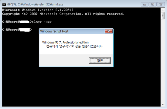 [윈도우 라이선스 인증/확인]
