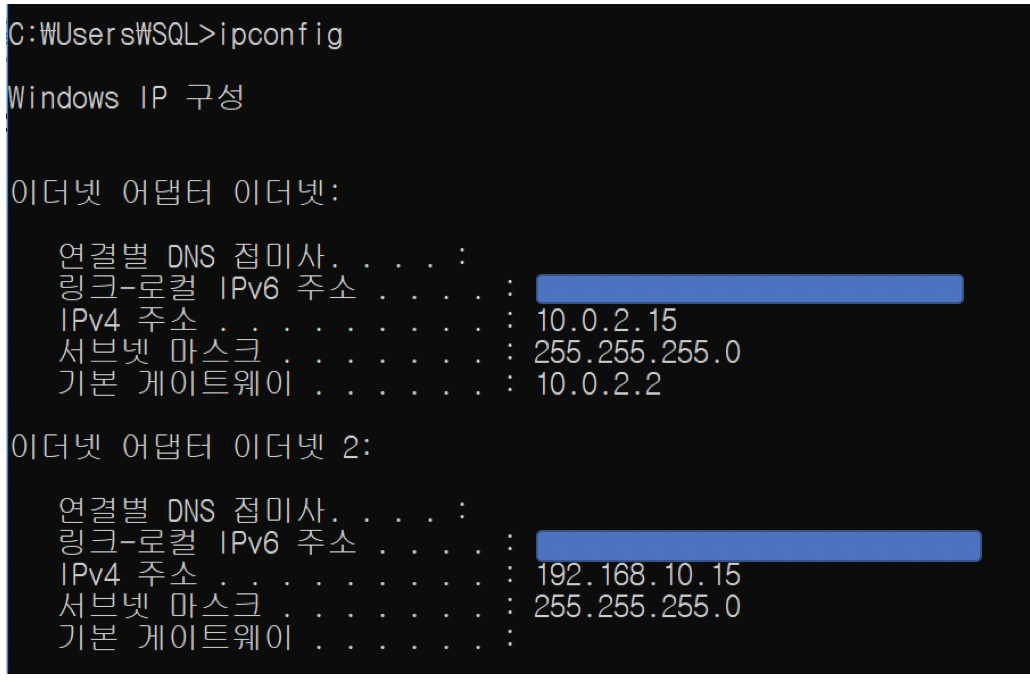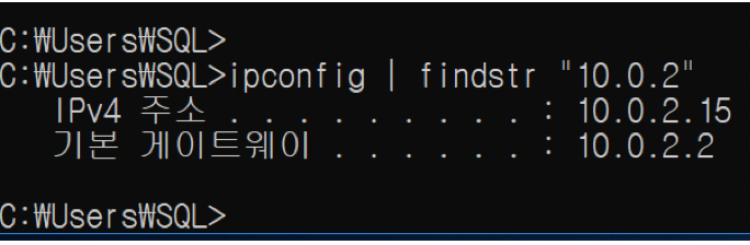 예제1) ipconfig 내용에서 10.0.2를 포함하는 라인을 모두 출력하는 예제