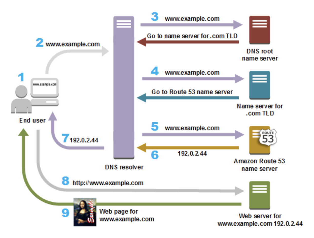 5. example.com 네임서버에게 www.example.com에 대한 주소를 질의.