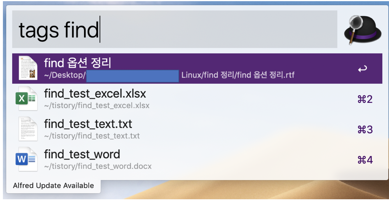 이 mdfind와 Alfred를 통해서 지정한 tag를 찾는 아주 간단한 방법을 소개하겠습니다.