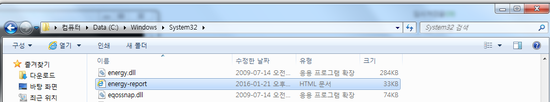 2. 그림과 같이 'powercfg.exe -energy'를 입력 -> 60초 정도 기다리면 저장된 파일 경로를 알려줌